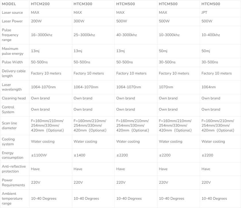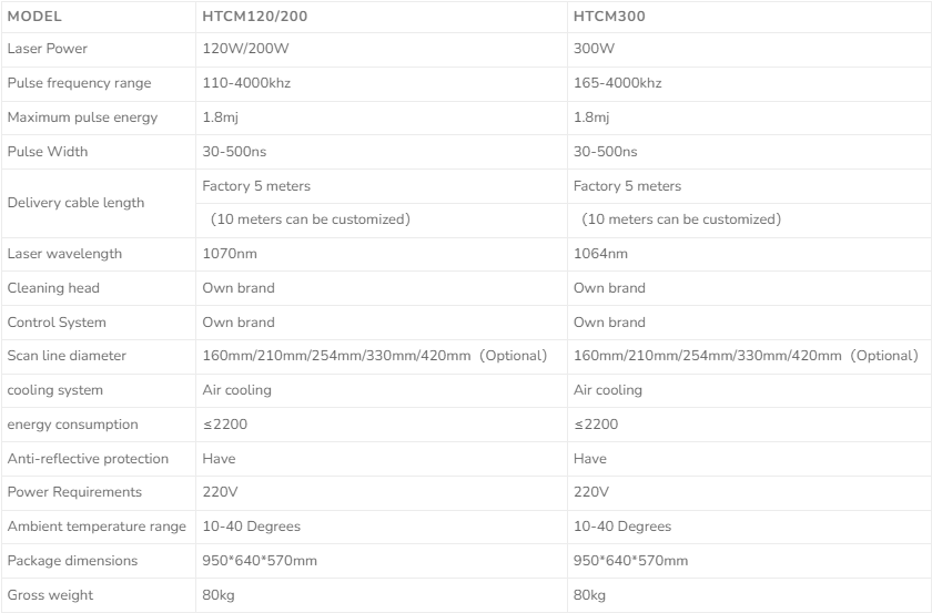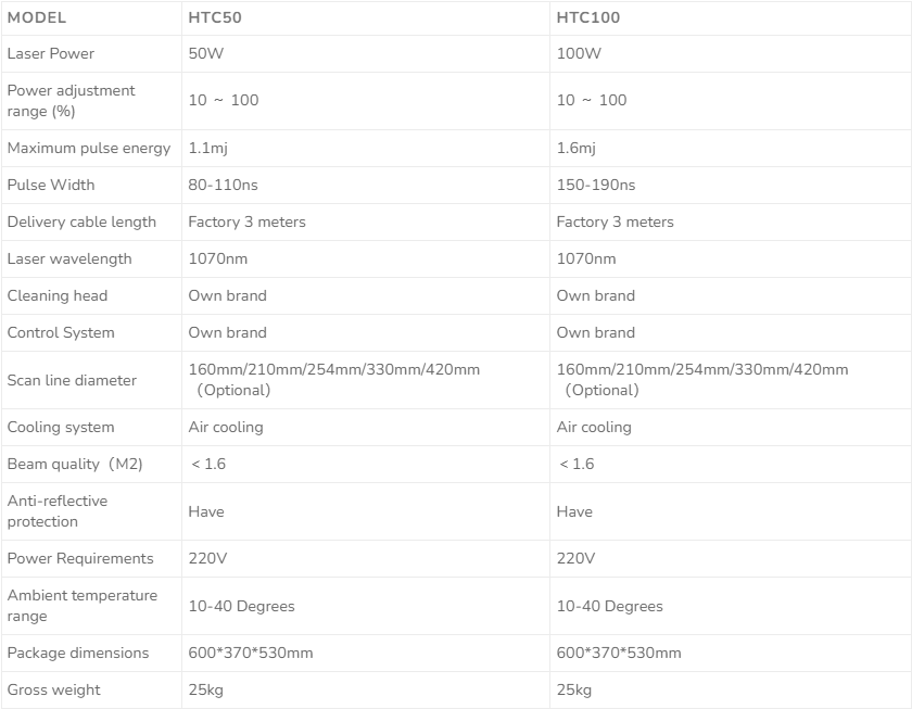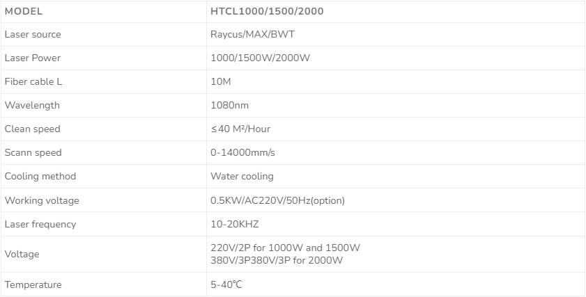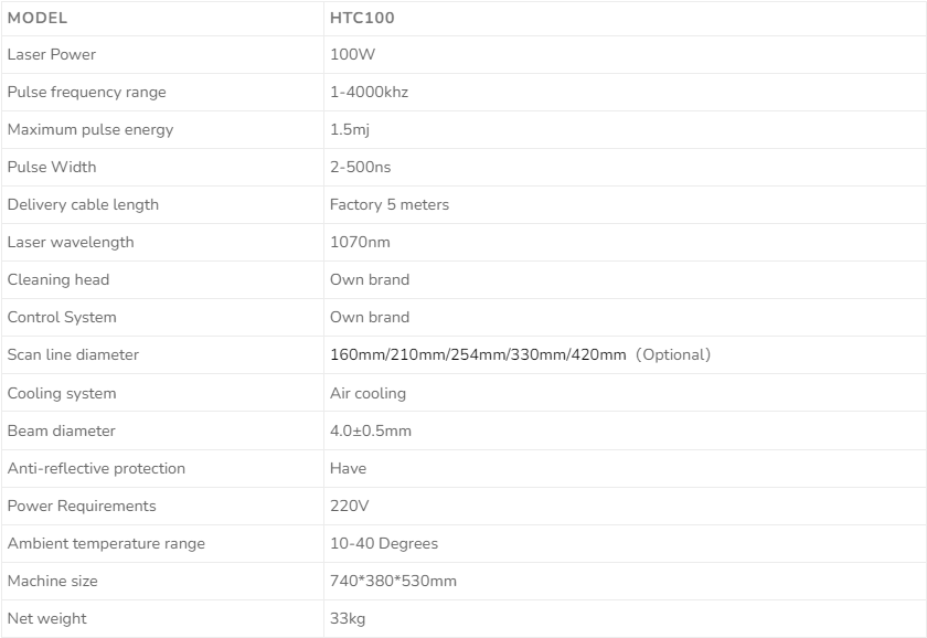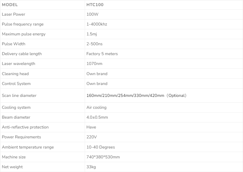 Laser Cleaning Machine Parameters